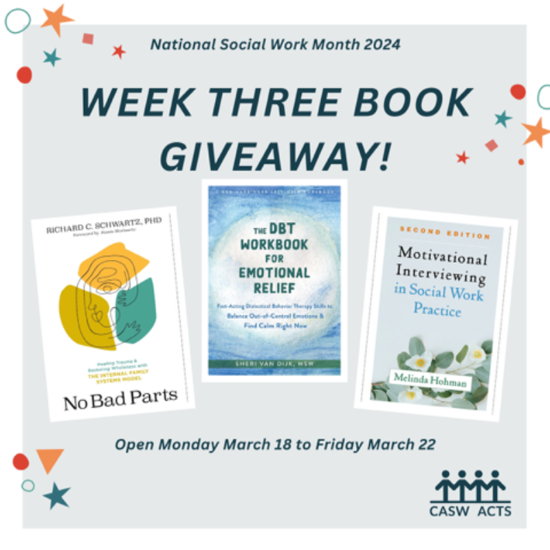 CASW will give away books to members who comment on our weekly Facebook, Instagram, or LinkedIn posts sharing why they think #SocialWorkOffersPossibilities. Follow us on social media for your chance to win!